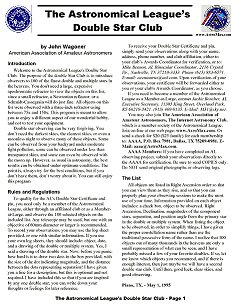 Welcome to the Astronomical League's Double Star Club. The purpose of the