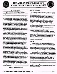 Southern Skies Binocular Club -