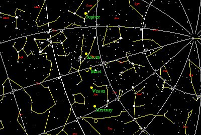 weeks in the evening sky and later in the morning sky. When observed at dawn or