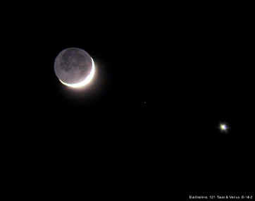 AAAA member Isaac Kikawada photographed this beautiful event from his Backyard in San Jose, CA, capturing bright Venus at dusk, and the soft glow of Earthshine on the new moon.
