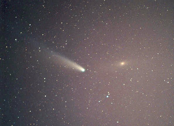 Around March 27, Ikeya-Zhang passed just a few degrees from the spiral galaxy M33. And in early April it crossed just above M31, the great Andromeda