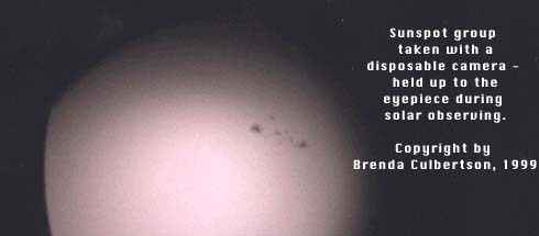 Sun photo shot with 100 ASA Focal Color film at 1/125s, C-8, aluminized mylar solar filter, Mayetta, Kans. 05/18/99.